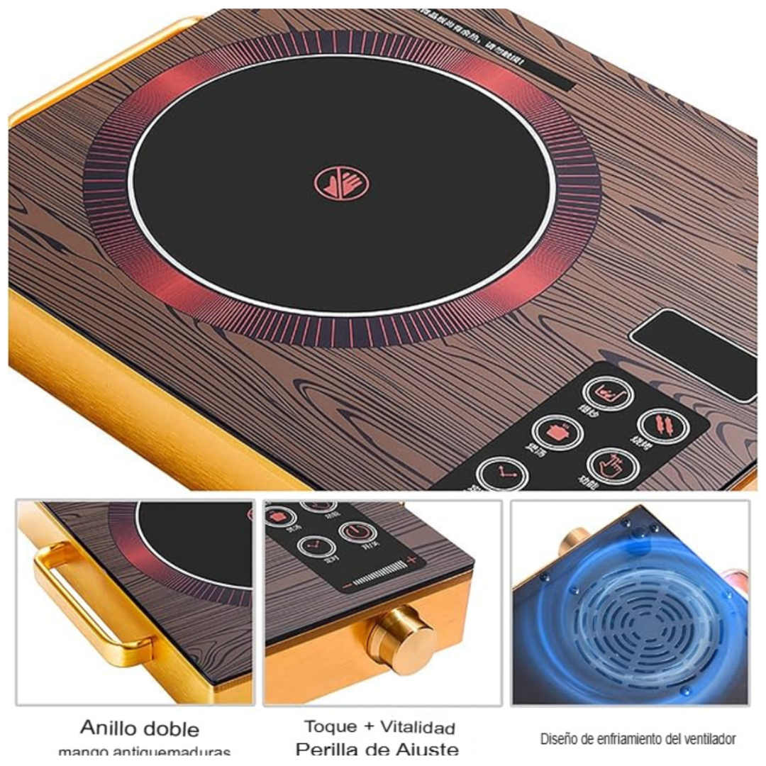 🌿 Encimera Eléctrica con Acabado en Madera – Elegancia Natural, Rendimiento Superior